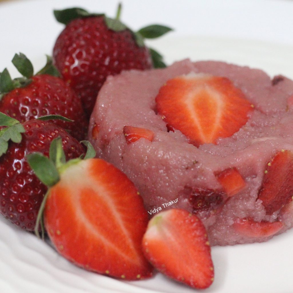 - Strawberries are available in winters, and the weather is chilled, hence serve strawberry sheera hot only, as the ghee tends to solidify and you wonβt be able to enjoy the actual flavour of strawberry sheera.