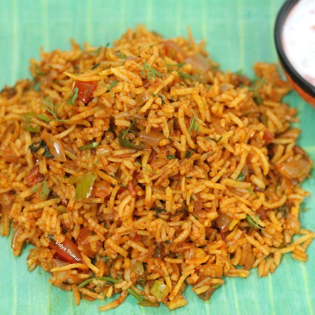 Garnish with coriander leaves. Serve hot with tomato onion raita.