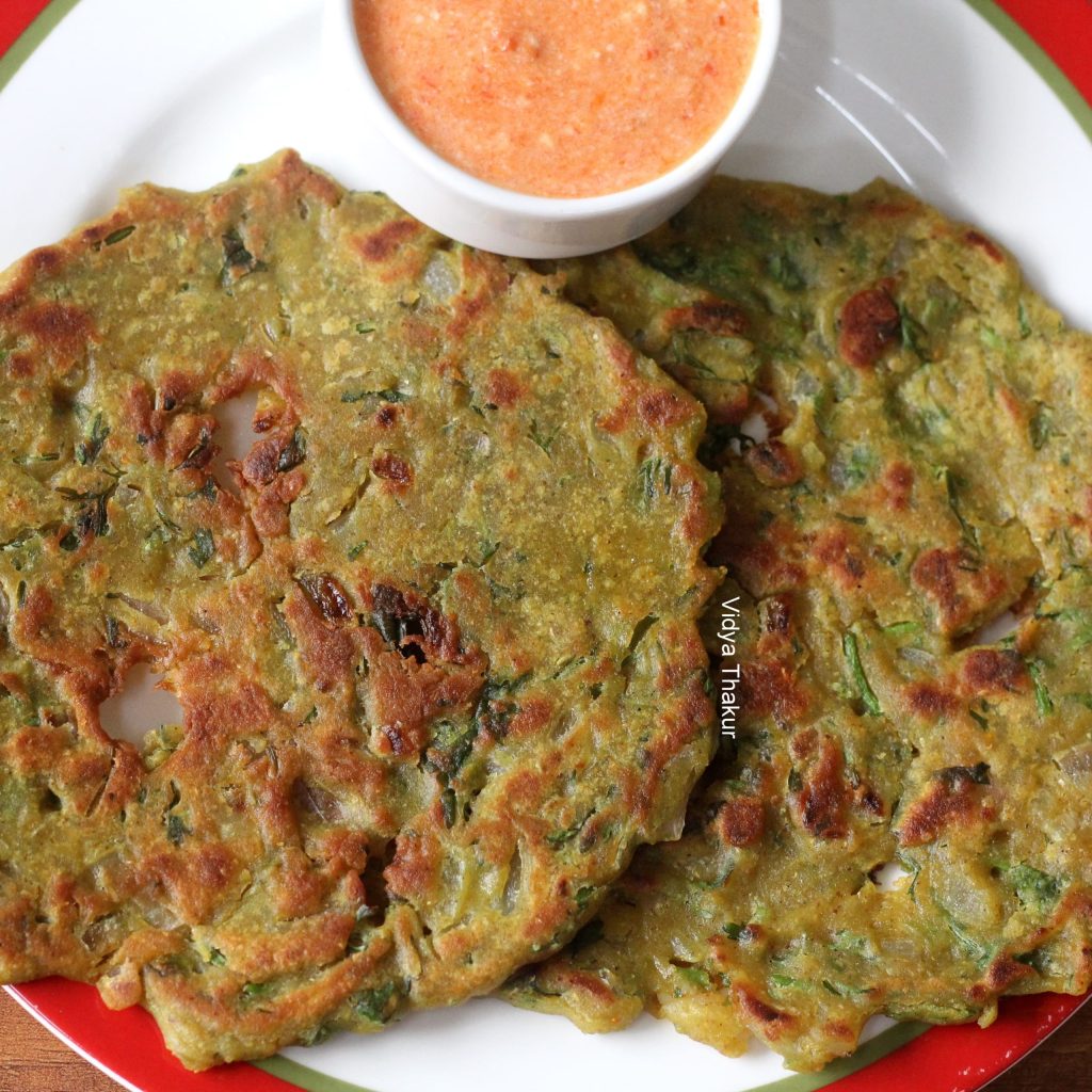 - Serve hot with a dollop of home made white butter,mirchi cha thecha and spiced curds(add crushed green chillies and salt to blended curds). Fresh red chilly season is coming to an end, I served thalipeeth with red chilli thecha mixed in curds.