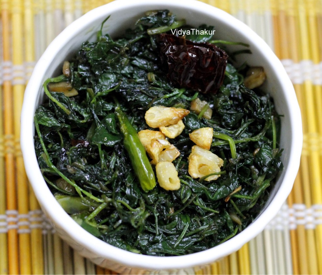 A Maharashtrian recipe prepared using fenugreek leaves with added flavour and tempering of garlic.
