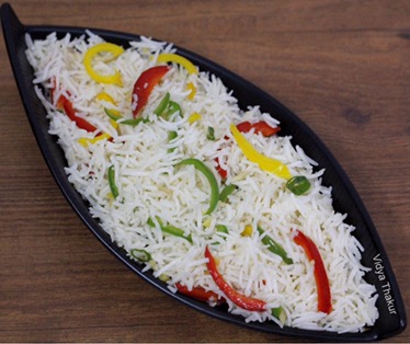 A simple Indo Chinese recipe that hardly takes up anytime. I love this rice for its simplicity and yes even though being indo chinese it goes well with our very own Indian regular dal fry too as it has no soy sauce and just a few drops of vinegar is added for the mild tangy flavour.
