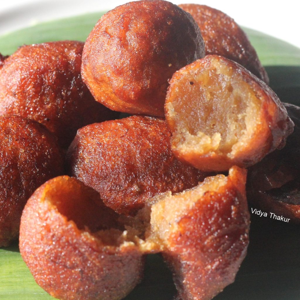 - The proportions mentioned are what I exactly needed. They may vary a bit here and there depending on the texture of the banana as well as the moisture released by the dissolved jaggery. DO NOT try to make it too sweet as jaggery darkens faster and the fritters may not get cooked inside and may get burnt from the outside.