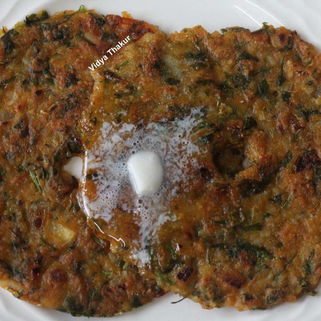 - Serve hot thalipeeth with white butter or thecha of your choice.
