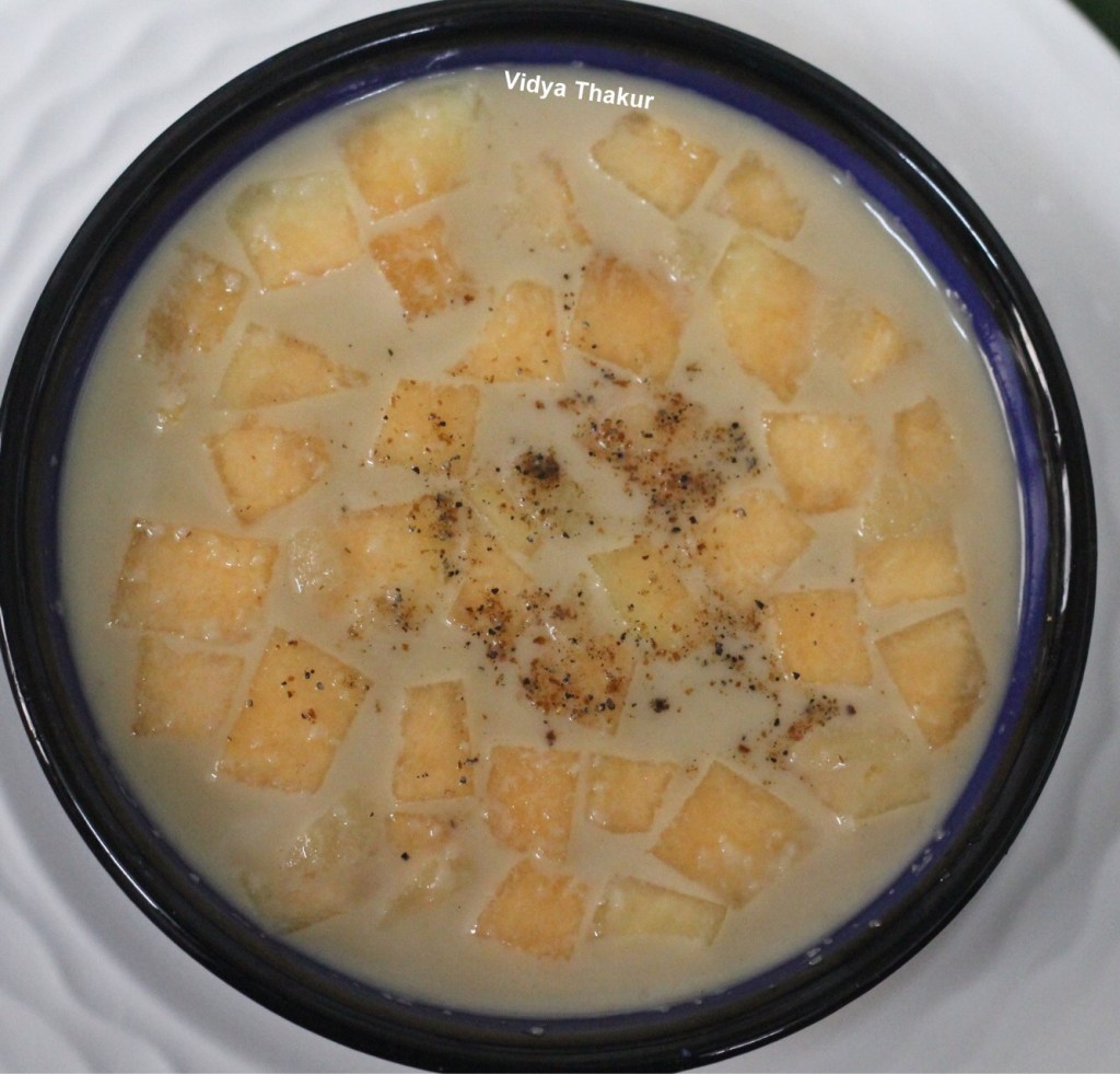 Chibud/ muskmelon harshale is a popular sweet from konkani / goan cuisine that is prepared on fasting days as well as offered as naivedyam or even otherwise. There are many varieties of muskmelon available in the market. I have used the cantaloupe variety as it is less sweet and gels well with sweetened coconut milk. Loaded with fiber, Vitamin C, high water content etc it is beneficial for health, hence try and include the same in your diet.