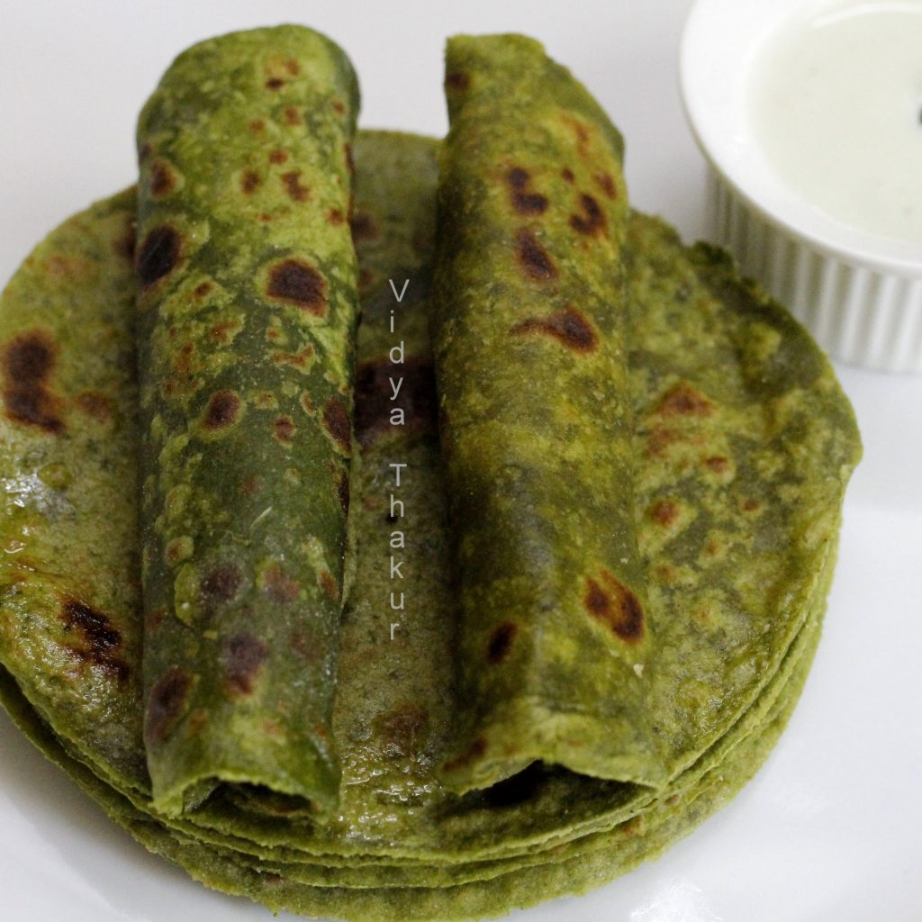 - Approximately 3/4th cup whole wheat flour(or as much as it fits into the palak puree)