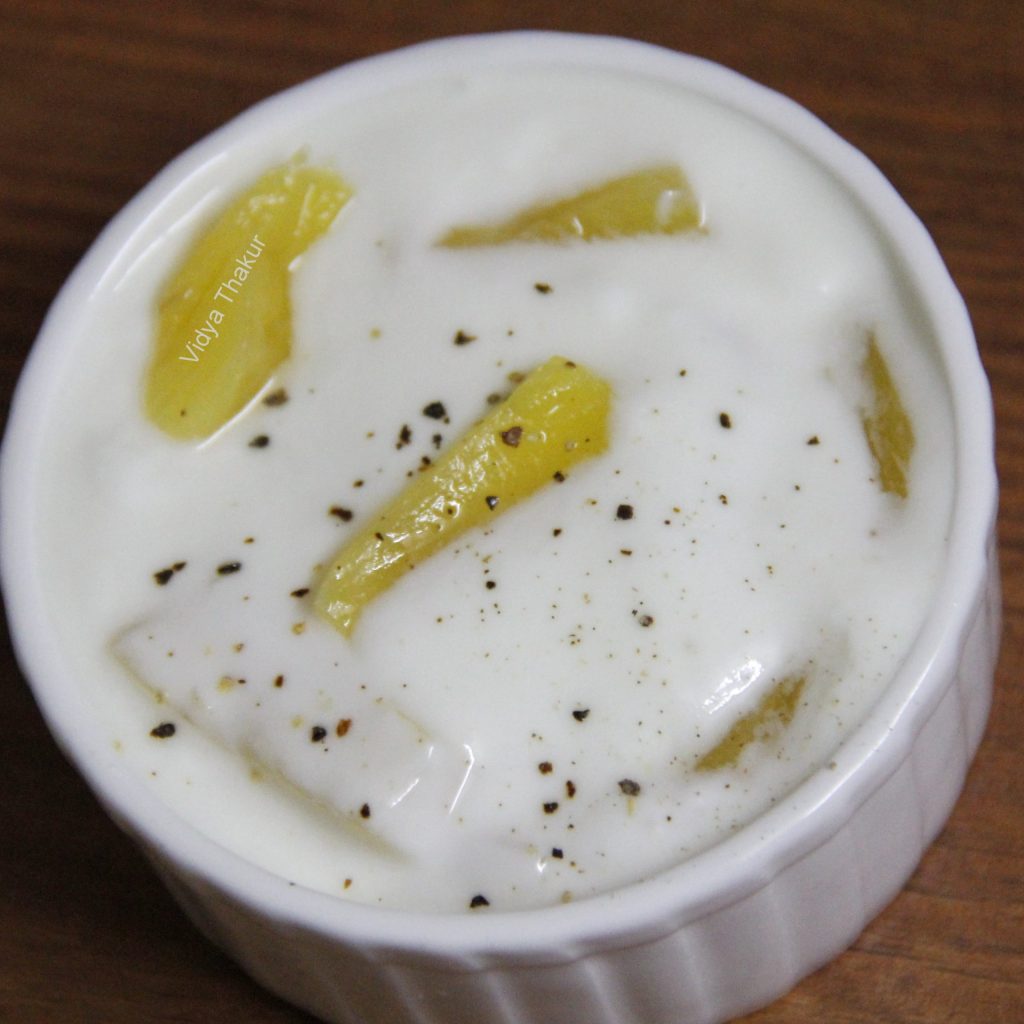 I like raitas with a tinge of spice be it green chilli, chilli powder or black pepper. I liked the flavour of black pepper to this raita.