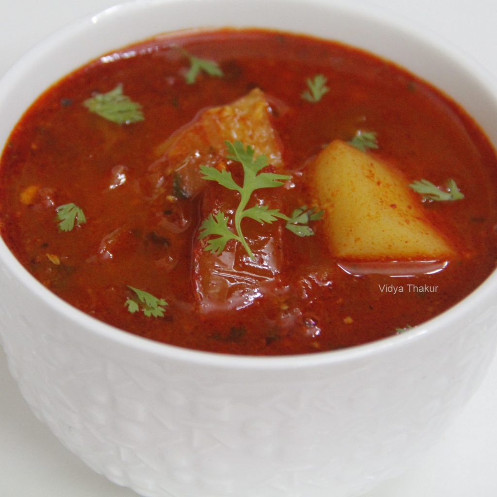 This is a spicy and tangy recipe that can be cooked with basic ingredients easily available at home. The spicier the gravy, the tastier it will be. Minor variations in a recipe gives rise to another delicious recipe. Similarly in this recipe I’ll be posting 3 different options you can try. Posting the very simple Batatyacha Rassa 😍😍.