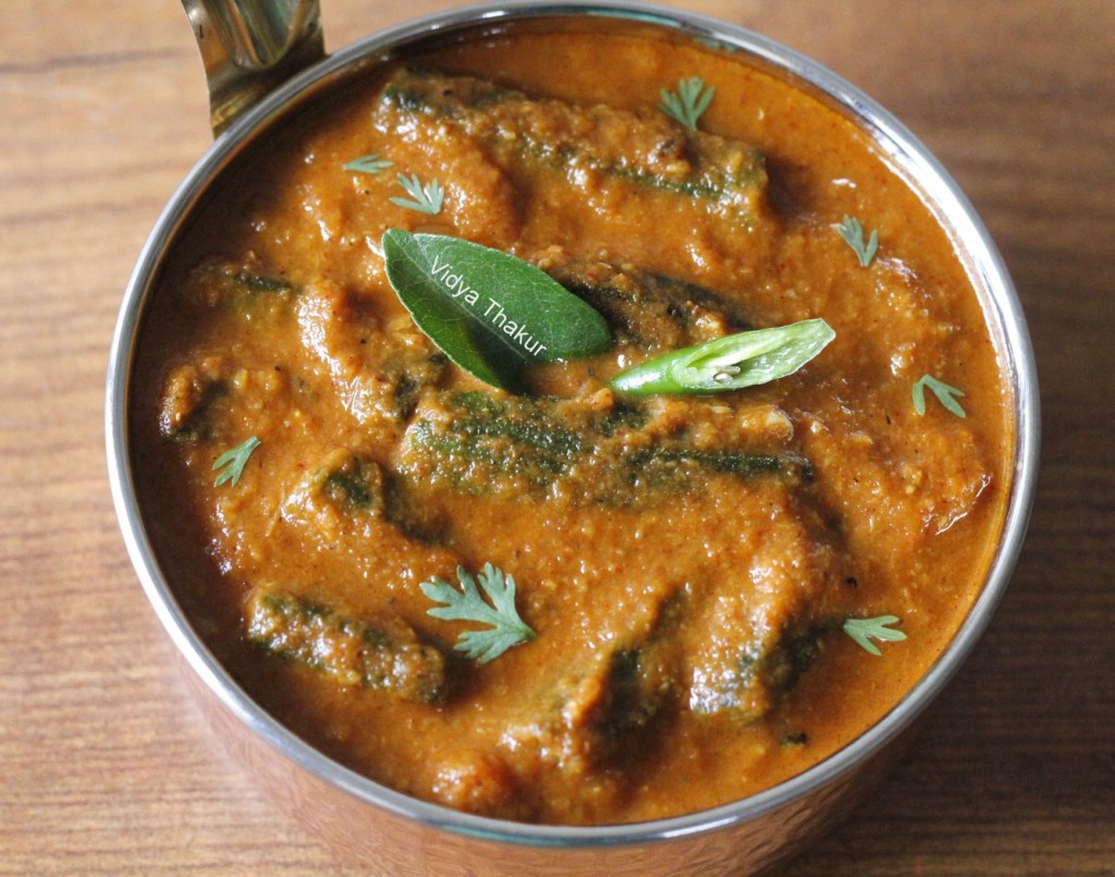The bhindi have been deep fried in the actual recipe while I have shallow fried the bhindi as they were very tender and it was easier to shallow fry them.I also admit that deep frying gives added flavour to the gravy as the oil in deep fried bhindi also sinks into the gravy giving it a resto flavour.