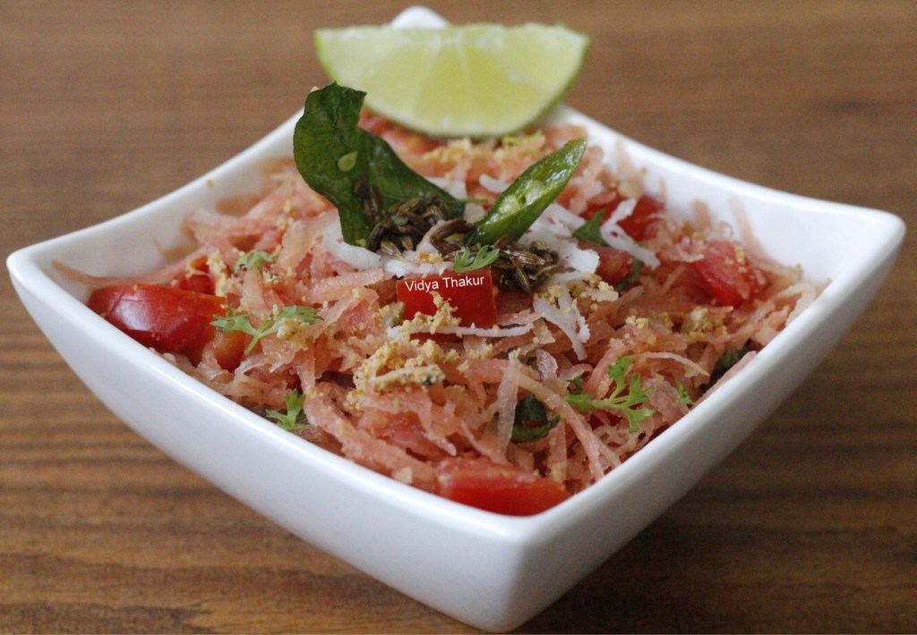 Carrot Tomato Salad is a healthy salad recipe which is usually served as an accompaniment with dal rice and rotis and yes it tastes great just by itself too. I love the carrots available in winters for its bright colour and juicy sweet flavour.