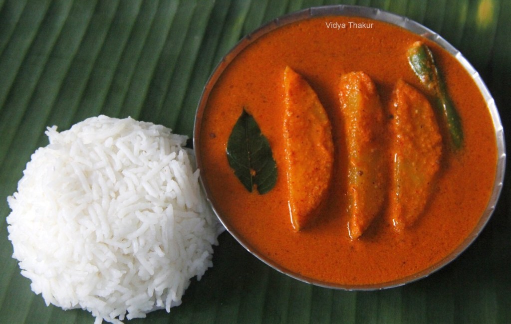 This is a traditional recipe from Konkan / Goan cuisine. The flavours in this curry are sweet sour and spicy in equal proportions that tastes great with steaming hot rice and does’nt need any other accompaniment. I had jotted down this recipe from a cookery show and this recipe was shared by Late Marathi actress Mrs Lalan Sarang. I thank her for sharing this wonderful tongue tickling recipe.