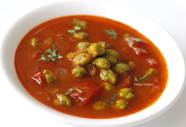 Saute well till you get the aroma then add turmeric powder, red chilli powder, malwani masala,stir,add tomatoes and saute well till oil leaves the sides, then add the steamed green gram and stir well. Add hot water to get the desired consistency,add salt and cook till tender but should bot break.